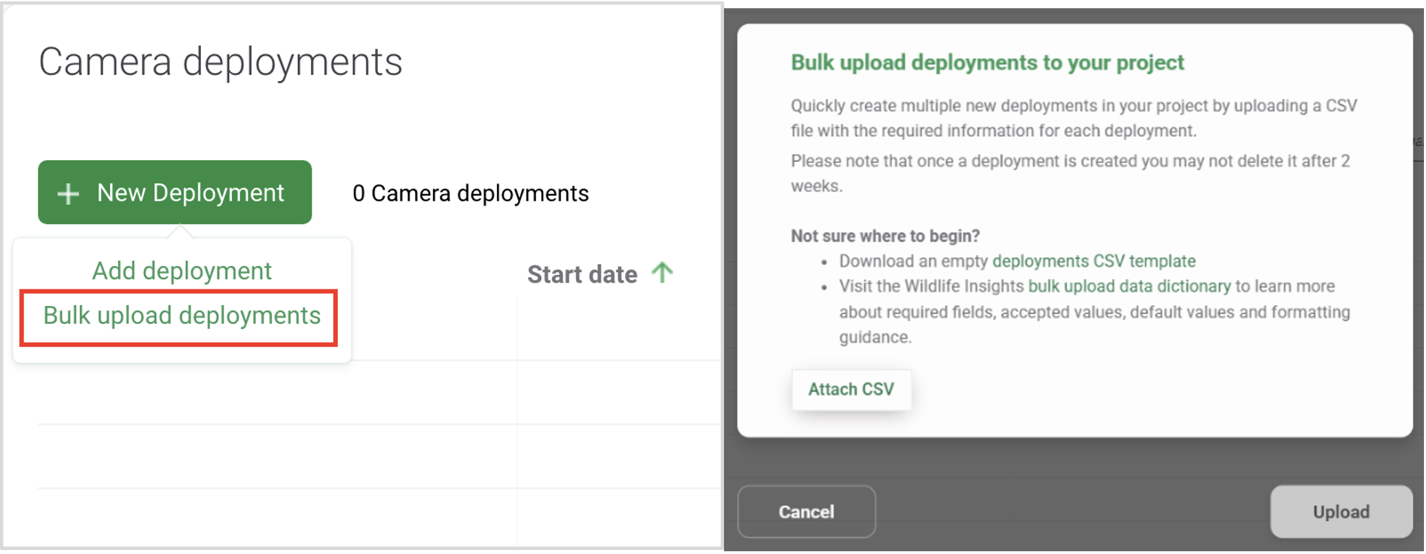 You can begin recording deployment information in a blank template as you set cameras out. Then, once you’re ready to upload images, you can save time by creating all your deployments in bulk!